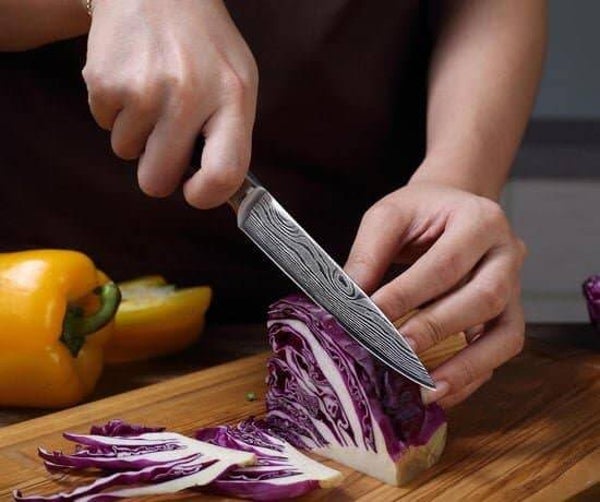 - Esthetisch ingelaserd Damascus patroon, waardoor het mes een blikvanger in de keuken is.