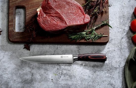 Verrijk je keuken met het PAUDIN N9 Premium Japans Vleesmes. Dit vleesmes, ook bekend als Universal N9 Vleesmes, is een onmisbaar instrument voor iedere kok en combineert esthetisch Japans design met functionele precisie.