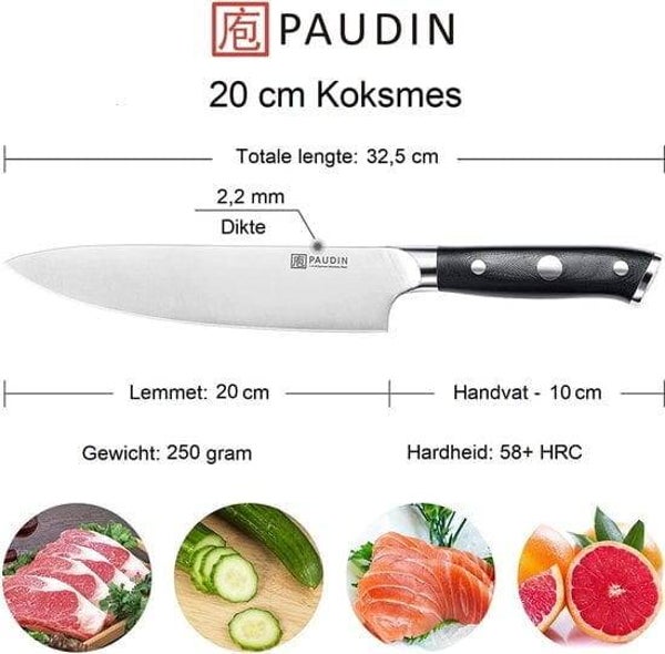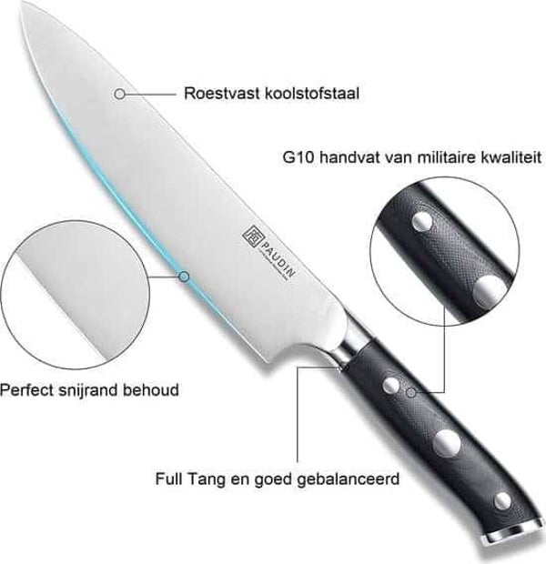 - Ongeëvenaarde snijprestaties: moeiteloos snijden door vlees, groenten, fruit en kruiden en met het premium Paudin D1 kookmes gaat dat bijzonder goed.
