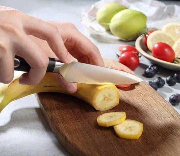 - Vlijmscherp mes gemaakt van hoogwaardig carbonstaal voor ultieme snijprecisie, ideaal voor een Ultra Dark D7 Groentemes.