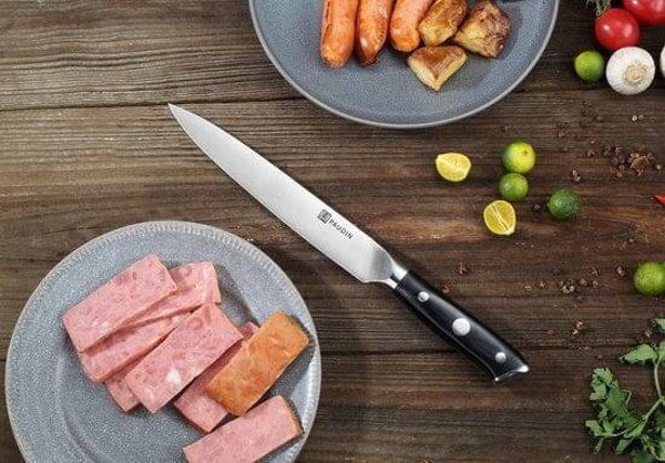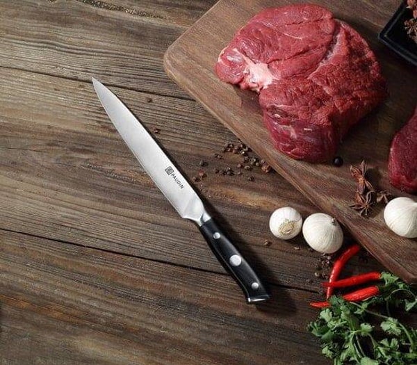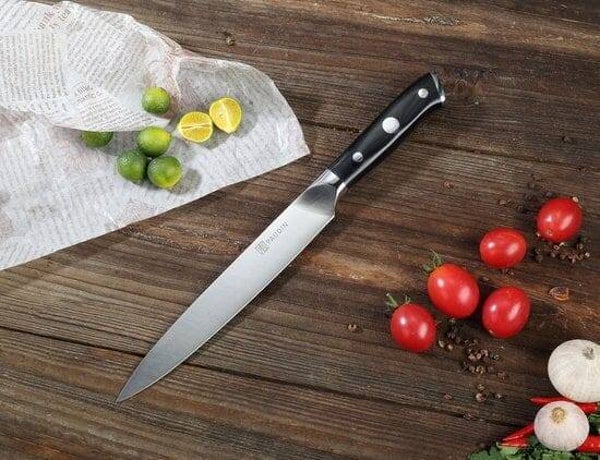 - Het vleesmes is gemaakt van hoogwaardig koolstofstaal, wat zorgt voor een lange levensduur en een vlijmscherpe snijervaring.