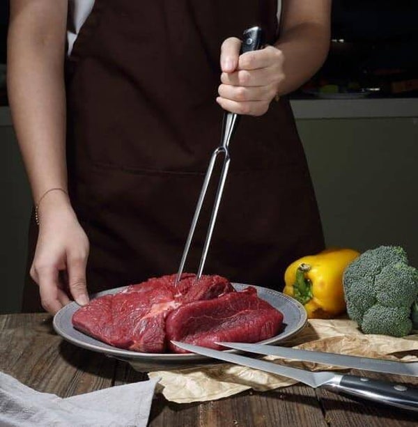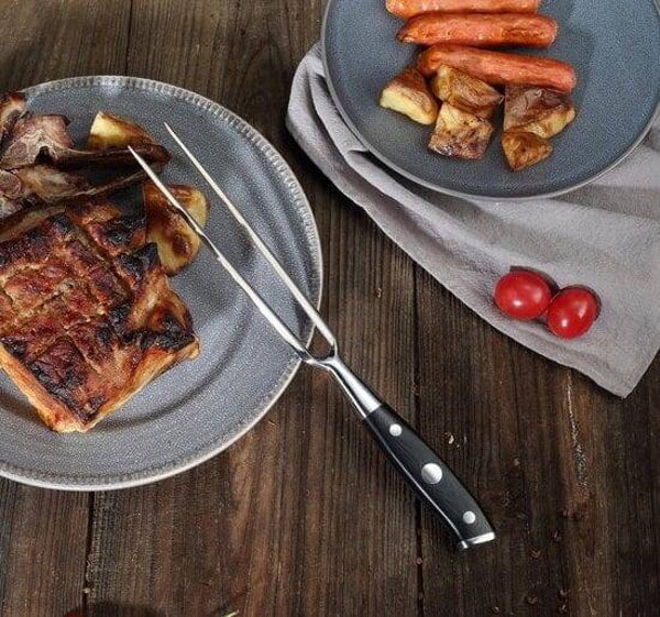 - De combinatie van het professionele vleesmes en vork maakt het snijden en serveren van vlees eenvoudiger en veiliger.