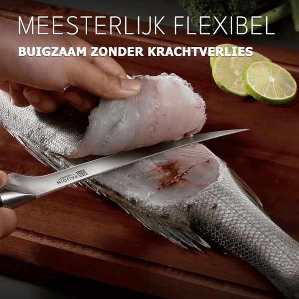 - Flexibel lemmet: dun en buigzaam, ideaal voor het nauwkeurig losmaken van filet van graat of bot.