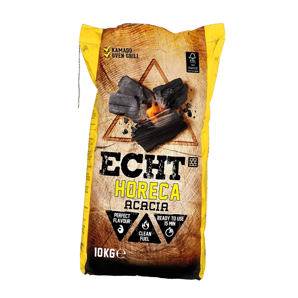 De ECHT Horeca Acacia 10kg houtskool is gemaakt van FSC 100% natuurlijk acaciahout, een duurzame en smaakvolle brandstof voor uw grill of barbecue. Acacia is een uitheemse houtsoort die niet in Zuid Afrika thuis hoort en daarom gekapt mag worden.